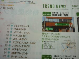 鳥取県中部の生活情報誌『くらら』に百景が載っていたんですよ~☆ミ