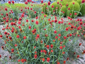 千日紅、メランポジウム、ケイトウ、フウセンカズラ