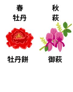 この春に咲く大きな牡丹の花から牡丹餅という名前がつきました。