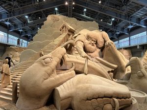 私は夏に行ってきましたが、繊細な技術で表現された各砂像の迫力に圧倒されました!!