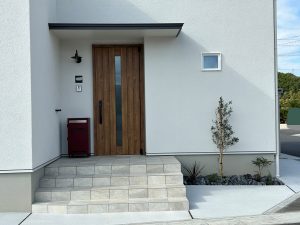 温かみのある色使いと玄関横の植栽に癒されます(*^^*)