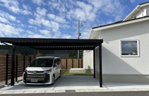 駐車スペースは土間コンクリートを施し、カーポートは積雪100㎝仕様の2台用を設置しました。