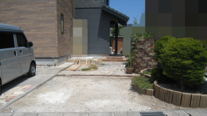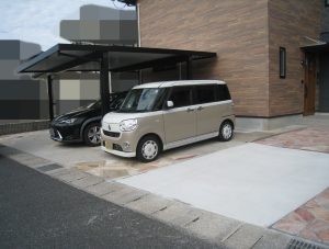 道路側は、既存の駐車スペースからもう1台車が駐車できるように土間コンクリートを施しています。