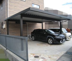 駐車スペースは、既存のコンクリートと乱張りをそのまま活かし、積雪50cm対応2台用を設置しました🚗